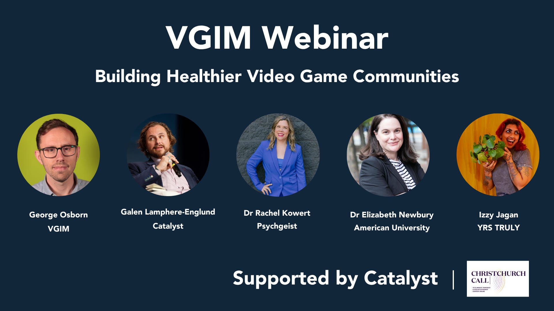 The first VGIM Webinar takes place later today at 3pm UK time with the support of Catalyst from the Christchurch Call Foundation.