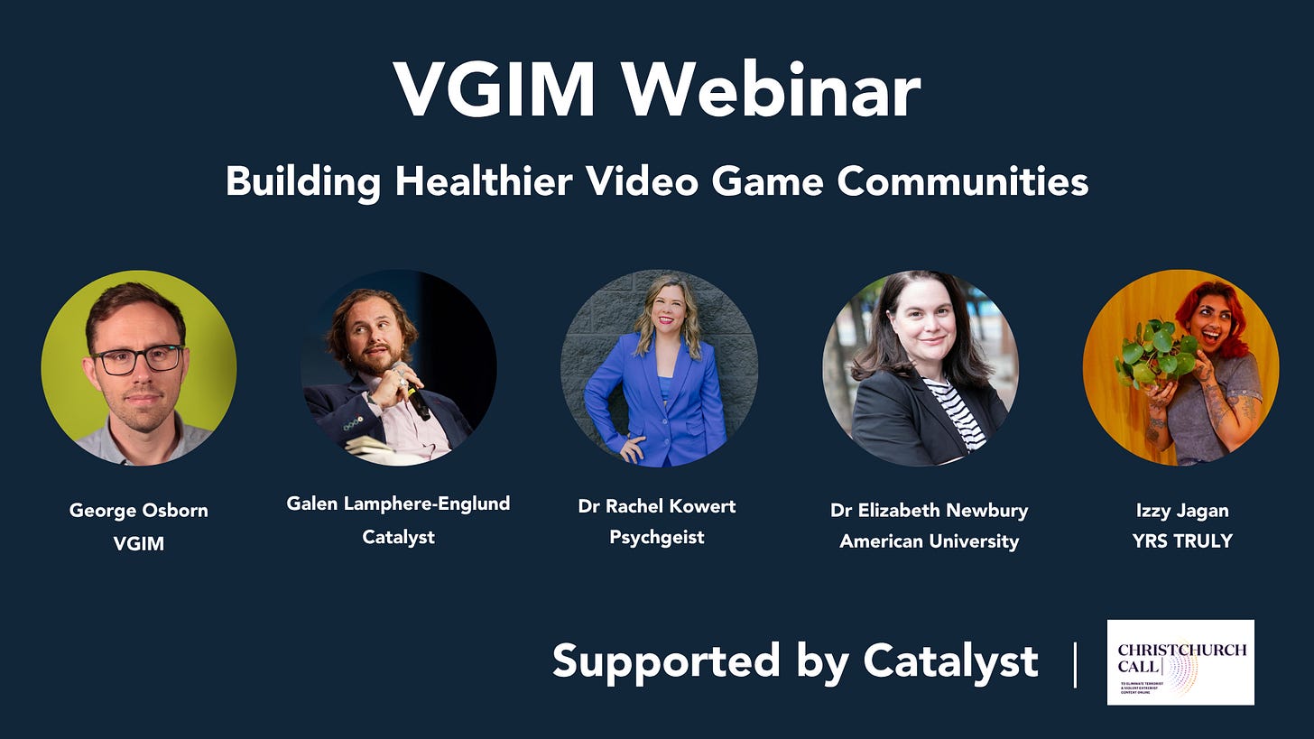 Join us for a free session about building healthier video game communities by signing up here.